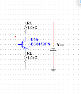 dasar ditambah resistor kolektor dan emiten yang dipantulkan oleh beta.